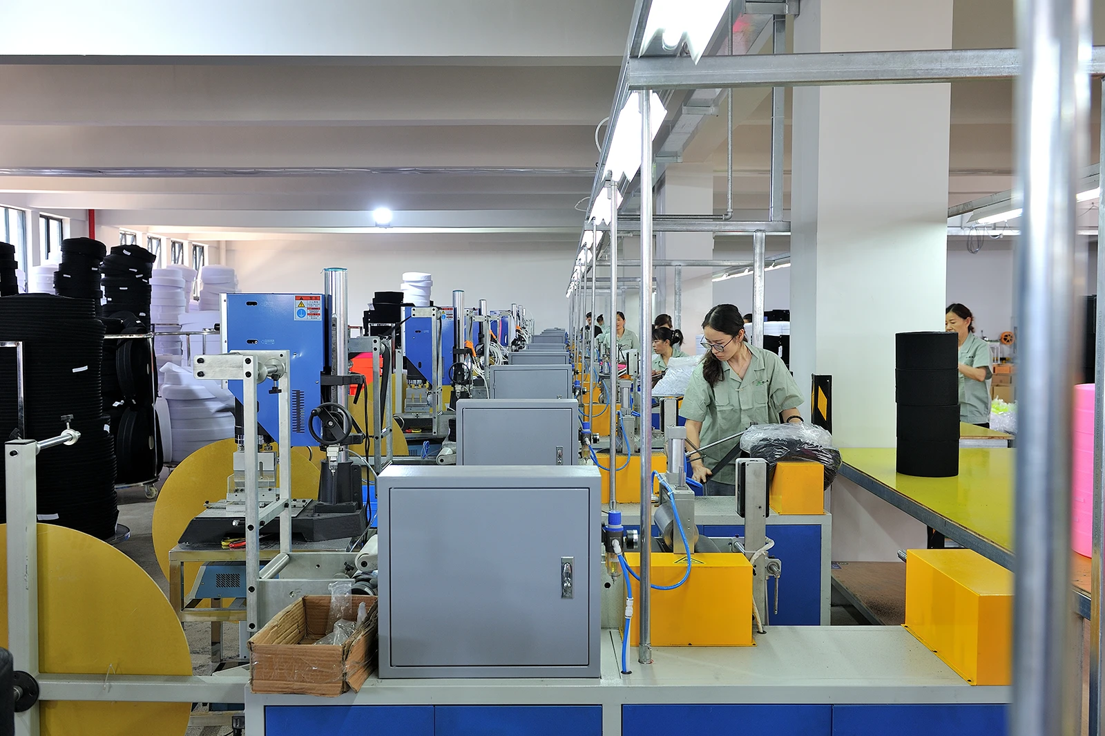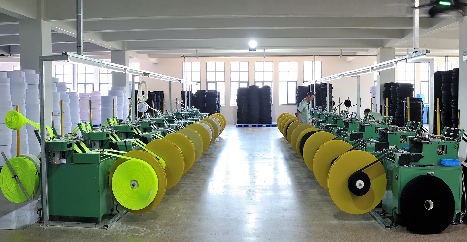 合一织造拥有国内外最先进粘扣带生产设备1800多台套,建有省级研发中心和产品检测中心,并与国内多所知名高校建有产学研合作关系,取得十多项专利。